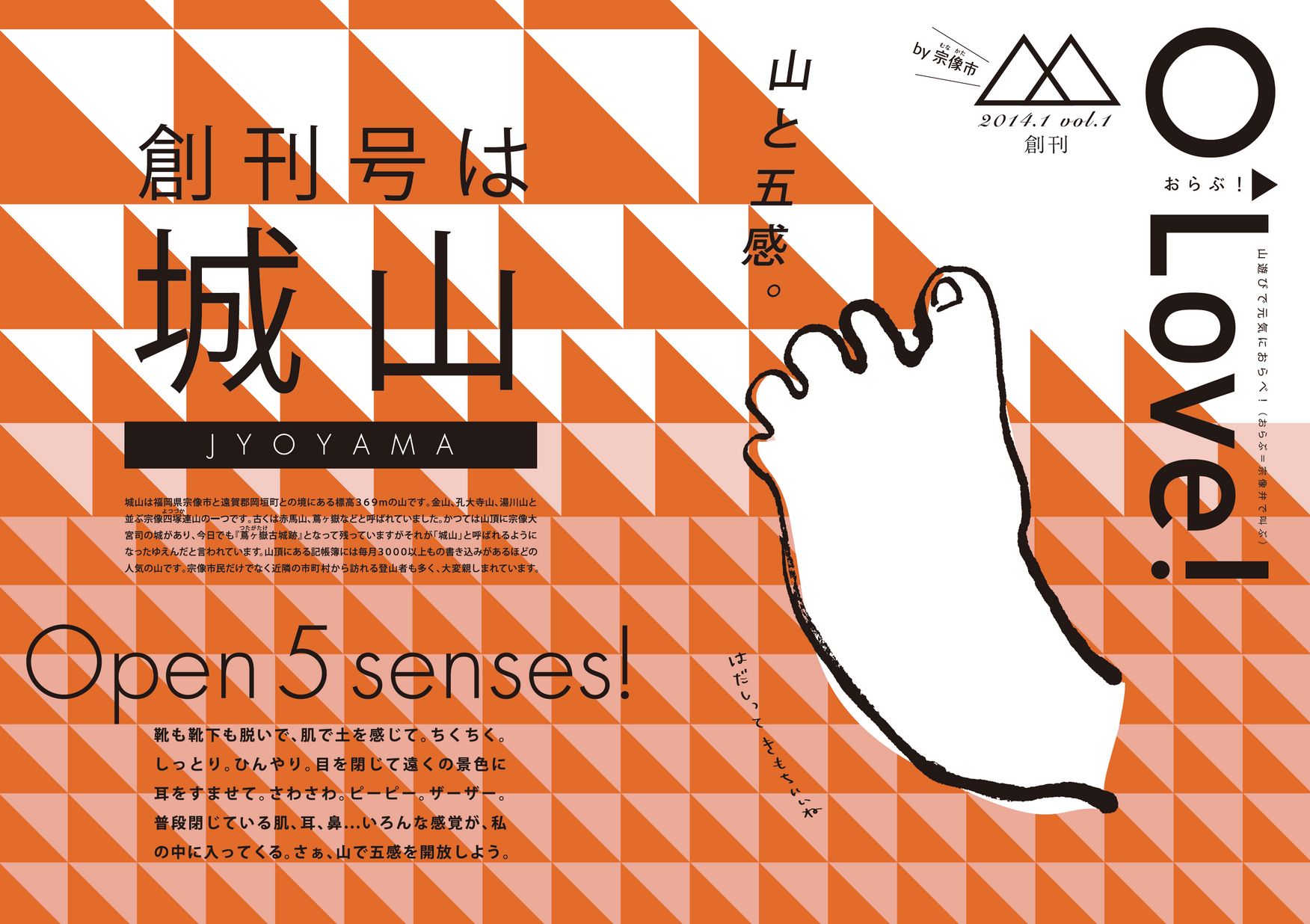 O'Love! おらぶ! Vol.1 「おらぶ」は宗像弁で「叫ぶ」。宗像の山を楽しむ情報誌。山遊びで元気におらべ! 【タグ】観光, 宗像市, 【カテゴリ】宗像市 【掲載日】2014-06-02 【ページ数】3 【発行元】宗像市 >電子ブックを開く(HTML5版) ツイート バックナンバー O'L...Vol.2