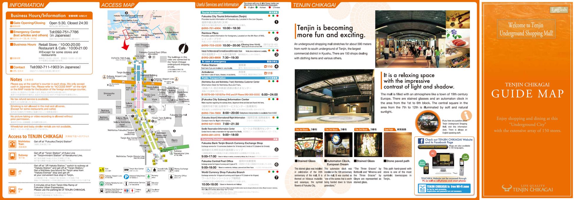 天神地下街の店舗ガイドマップと電話番号一覧(ENGLISH)