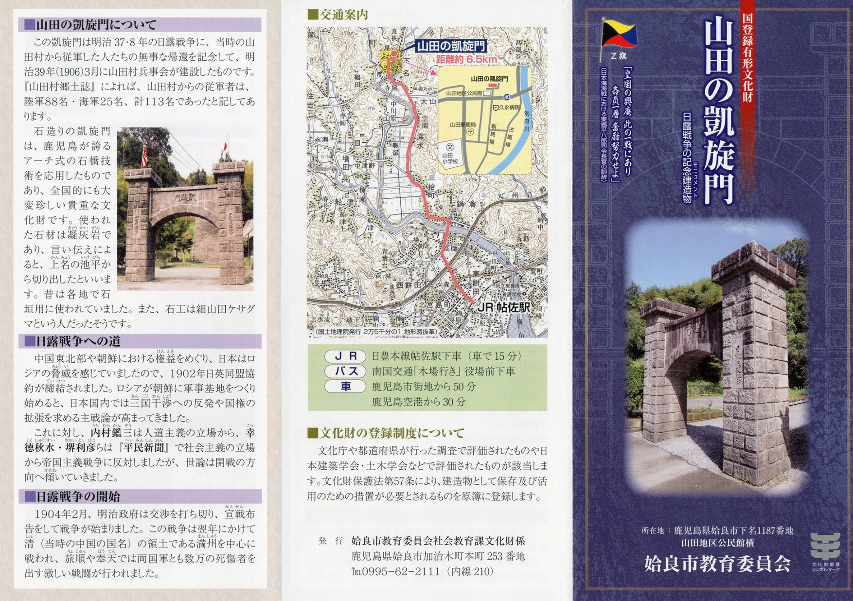 国登録有形文化財山田の凱旋門 山田の凱旋門を紹介したパンフレットです。 【タグ】観光, 【カテゴリ】姶良市 【掲載日】2014-10-15 【ページ数】2 【発行元】姶良市教育委員会 >電子ブックを開く(HTML5版) ツイート