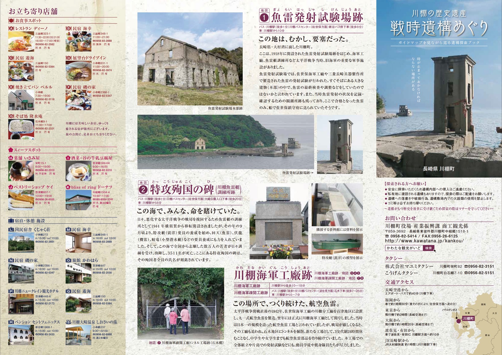川棚の歴史遺産 戦時遺構めぐり 長崎県 川棚町遺構ガイドマップ。 【タグ】観光, 【カテゴリ】川棚町 【掲載日】2015-03-28 【ページ数】2 【発行元】川棚町役場 産業振興課 >電子ブックを開く(HTML5版) ツイート