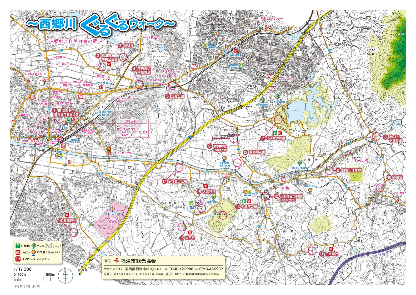 福津市最大河川西郷川周辺を巡るウォーキングマップです。