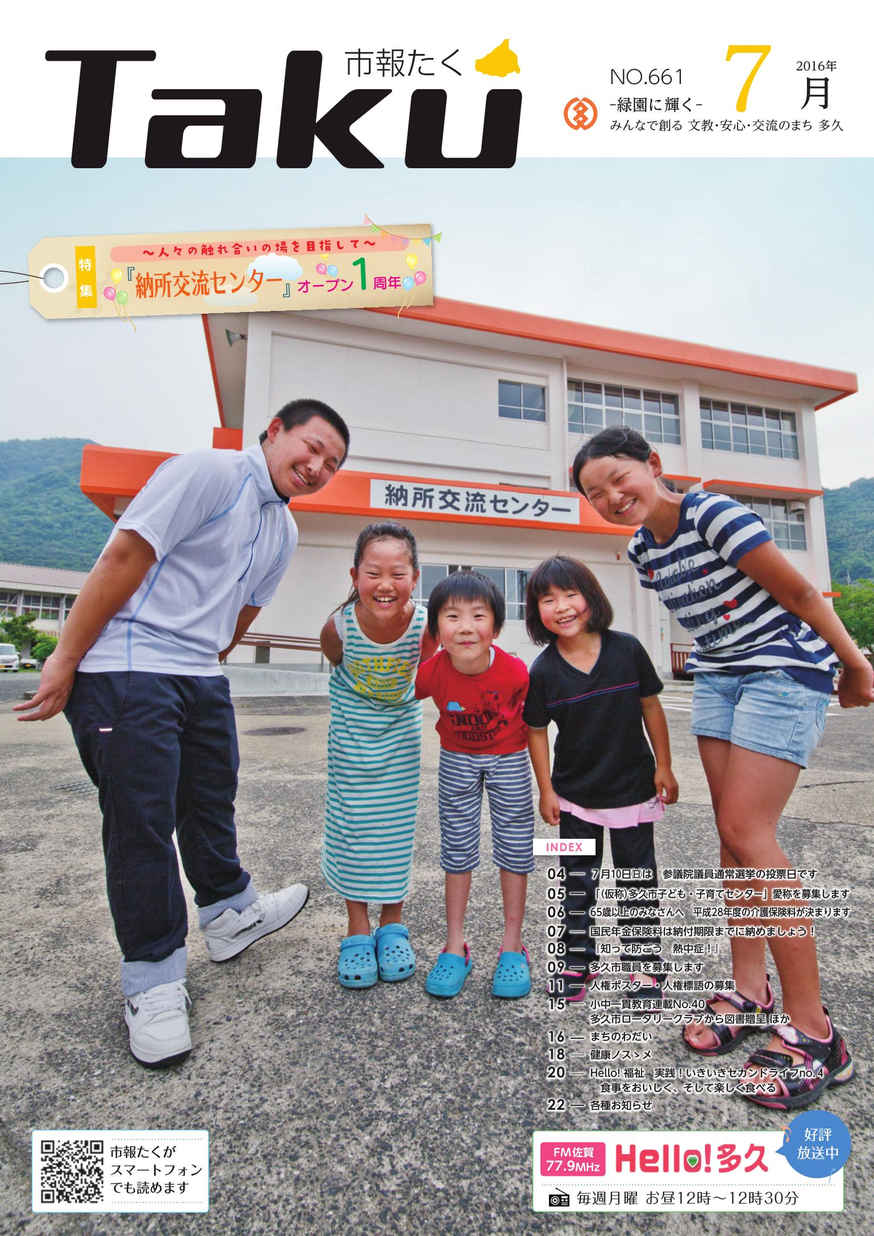 市報多久 平成28年7月号 紙媒体8000部/月発行。28ページ。月1回発行 【タグ】広報誌, 【カテゴリ】多久市 【掲載日】2016-07-08 【ページ数】26 【発行元】多久市 総務課 >電子ブックを開く(HTML5版) ツイート バックナンバー 市報多久平成29年3月号 市報多久平成29年2月号 市報多久平成29年1月号 市報多久平成28年12月号 市報多久平成28年11月号 市報多久平成28年10月号 市報多久平成28年9月号 市報多久平成28年8月号 市報多久平成28年6月号 市報多久平成28年5月号 市報多久平成28年4月号