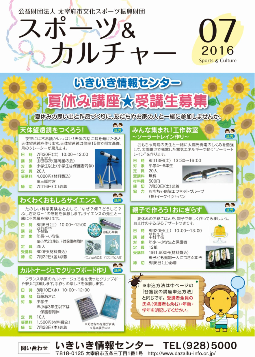 (公財)太宰府市文化スポーツ振興財団が管理・運営する施設の、講座やイベント案内。