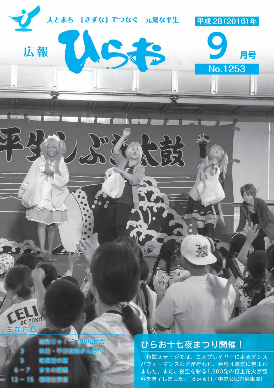 広報ひらお 平成28年9月号 まちの情報や話題などを掲載。(毎月1回発行) 【タグ】広報誌, 【カテゴリ】平生町 【掲載日】2016-09-15 【ページ数】16 【発行元】平生町役場 総務課 >電子ブックを開く(HTML5版) ツイート バックナンバー 広報ひらお平成29年7月号 広報ひらお平成29年6月号 広報ひらお平成29年5月号 広報ひらお平成29年4月号 広報ひらお平成29年3月号 広報ひらお平成29年2月号 広報ひらお平成29年1月号 広報ひらお平成28年12月号 広報ひらお平成28年11月号 広報ひらお平成28年10月号 広報ひらお平成28年8月号 広報ひらお平成28年7月号 広報ひらお平成28年6月号 広報ひらお平成28年5月号 広報ひらお平成28年4月号 広報ひらお平成28年3月号 広報ひらお平成28年2月号 広報ひらお平成28年1月号