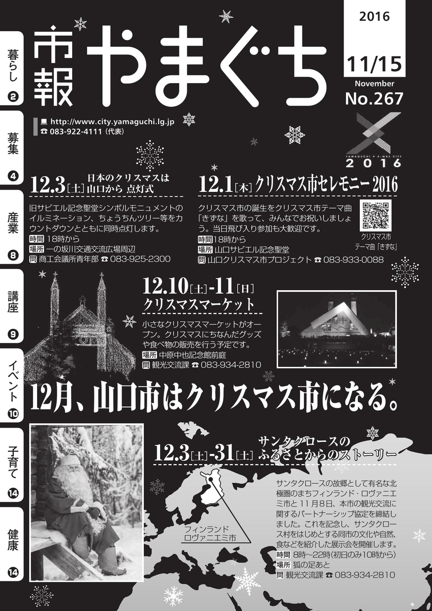 市報やまぐち 2016年11月15日号 山口市の市政情報を掲載。 【タグ】広報誌, 【カテゴリ】山口市 【掲載日】2016-11-25 【ページ数】16 【発行元】山口市 広報広聴課 >電子ブックを開く(HTML5版) ツイート バックナンバー 市報やまぐち2017年4月15日... 市報やまぐち2017年4月1日号 市報やまぐち2017年3月15日... 市報やまぐち2017年3月1日号 市報やまぐち2017年2月15日... 市報やまぐち2017年2月1日号 市報やまぐち2017年1月15日... 市報やまぐち2017年1月1日号 市報やまぐち2016年12月15... 市報やまぐち2016年12月1日... 市報やまぐち2016年11月1日...