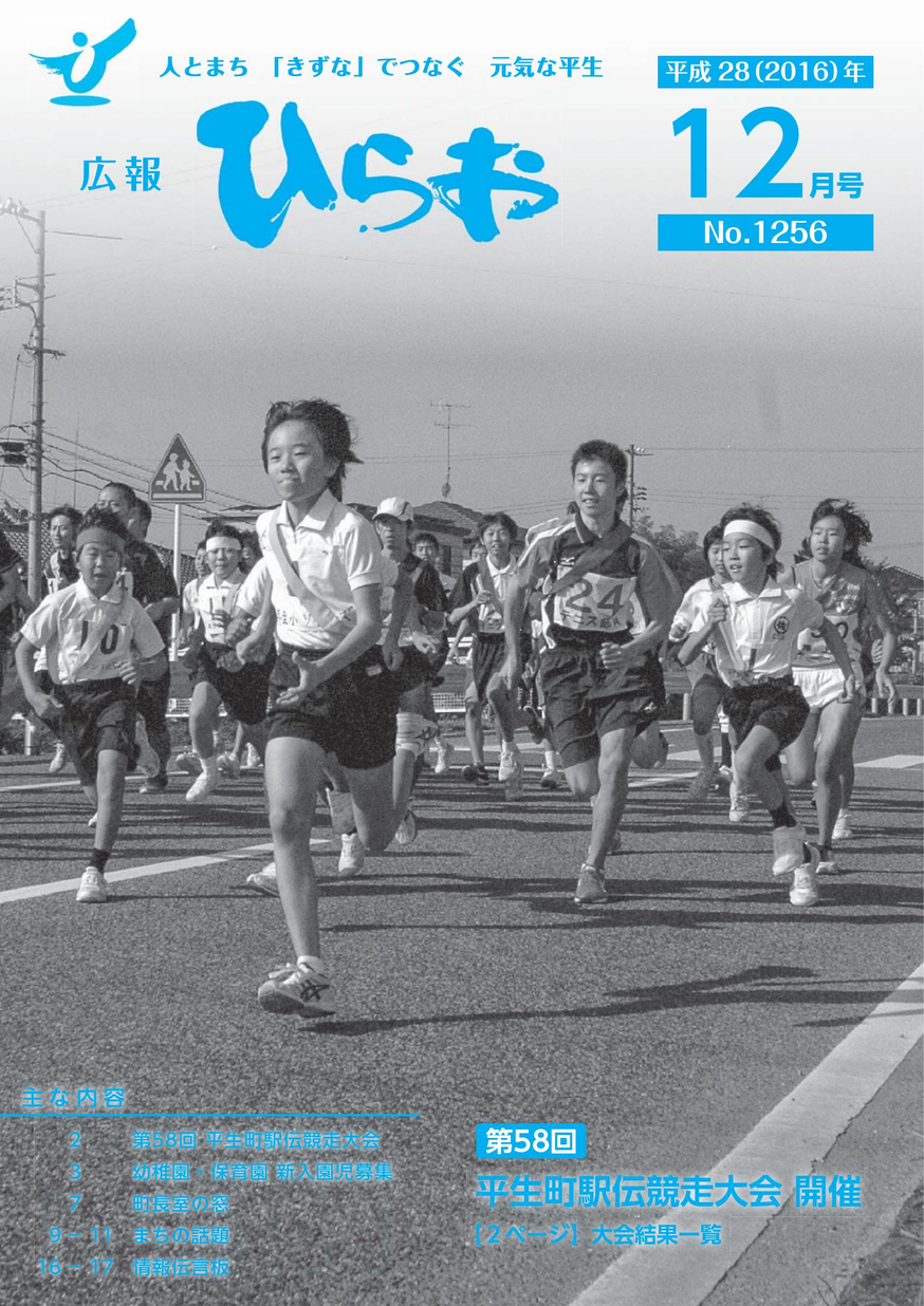 広報ひらお 平成28年12月号 まちの情報や話題などを掲載。(毎月1回発行) 【タグ】広報誌, 【カテゴリ】平生町 【掲載日】2016-12-15 【ページ数】18 【発行元】平生町役場 総務課 >電子ブックを開く(HTML5版) ツイート バックナンバー 広報ひらお平成29年7月号 広報ひらお平成29年6月号 広報ひらお平成29年5月号 広報ひらお平成29年4月号 広報ひらお平成29年3月号 広報ひらお平成29年2月号 広報ひらお平成29年1月号 広報ひらお平成28年11月号 広報ひらお平成28年10月号 広報ひらお平成28年9月号 広報ひらお平成28年8月号 広報ひらお平成28年7月号 広報ひらお平成28年6月号 広報ひらお平成28年5月号 広報ひらお平成28年4月号 広報ひらお平成28年3月号 広報ひらお平成28年2月号 広報ひらお平成28年1月号