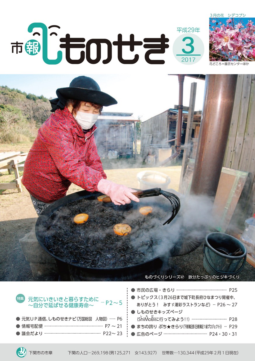 市報しものせき 2017年3月1日号 トピックスなどの市からのお知らせの他、話題の人やまちづくりなどに取り組む団体の紹介、キッズページなどで構成。 【タグ】広報誌, 【カテゴリ】下関市 【掲載日】2017-03-09 【ページ数】32 【発行元】下関市 広報広聴課 >電子ブックを開く(HTML5版) ツイート バックナンバー 市報しものせき2017年4月1日号 市報しものせき2017年2月1日号 市報しものせき2017年1月1日号